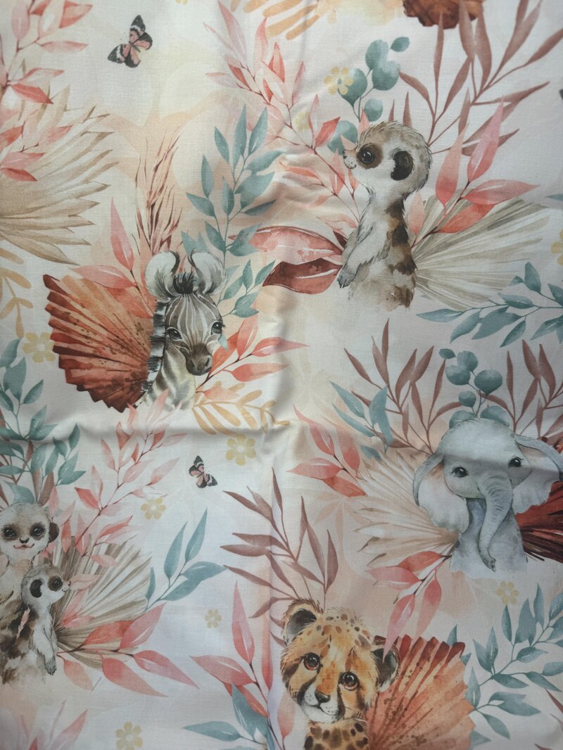 Foresta, stoffa bimba, rosa, verde, animali, pesca