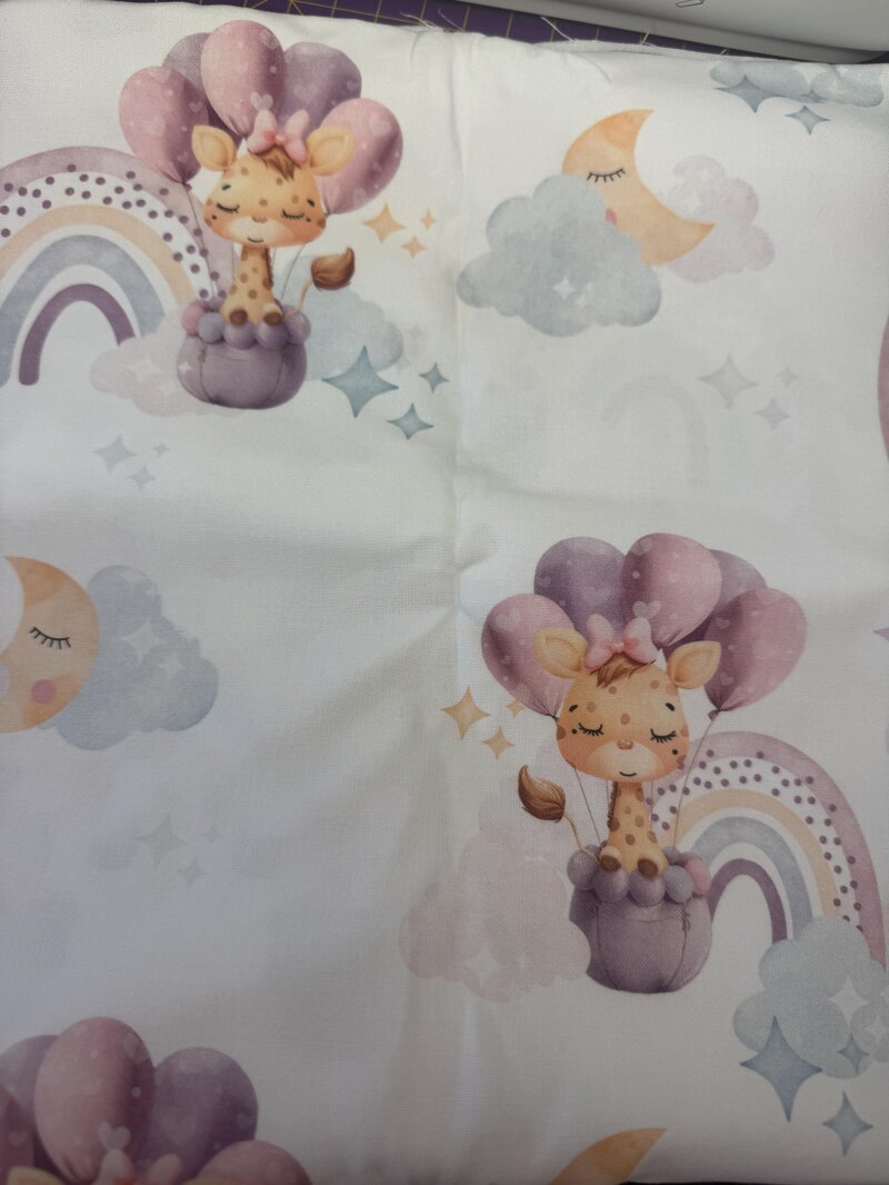 Stoffa giraffa arcobaleno lilla