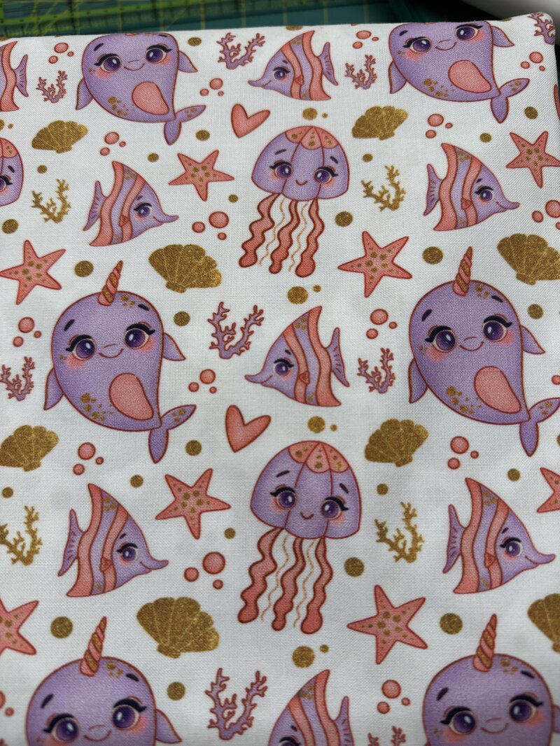 Stoffa mare viola e corallo