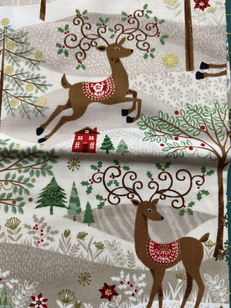 Stoffa renne fondo grigio e oro